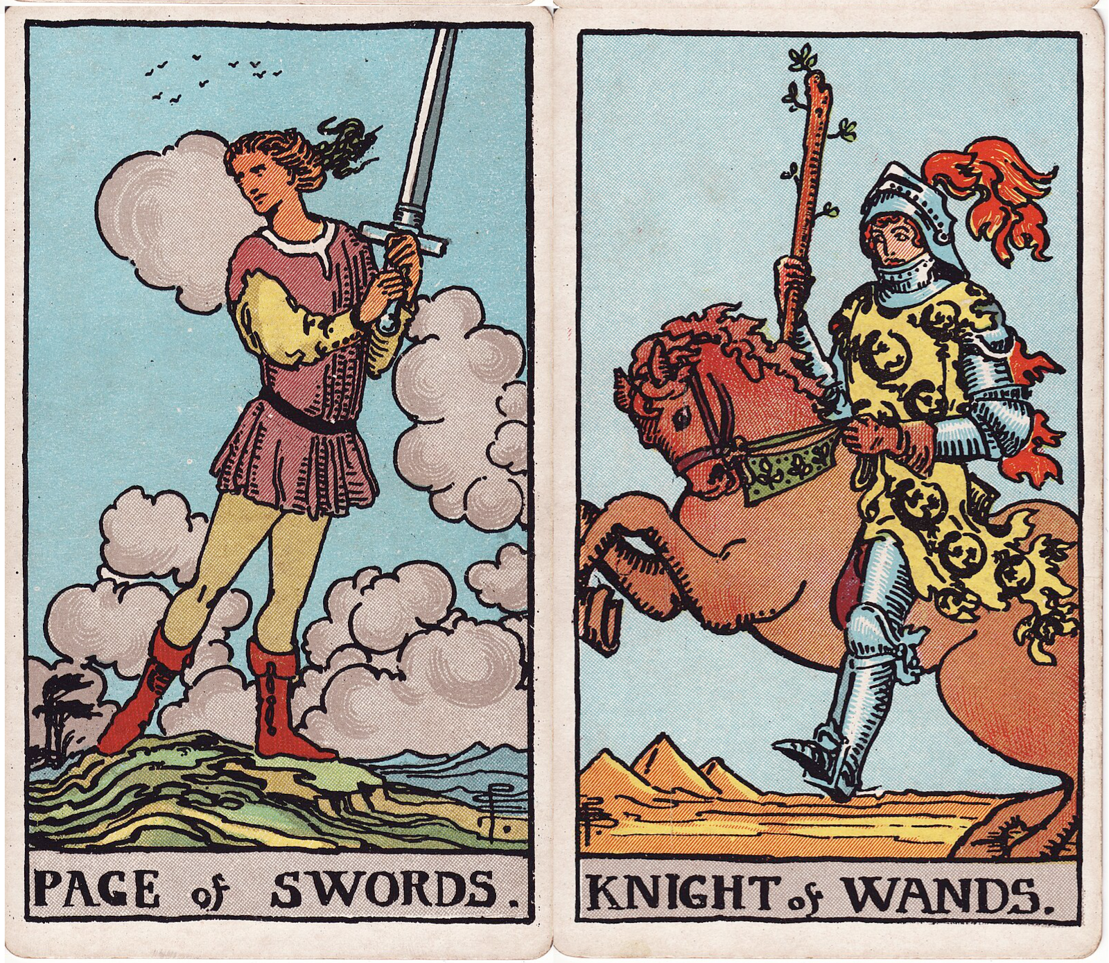 The pull for Option II felt affirming. Here was the fiery energy I felt growing inside of me! The Knight of Wands represents the courageous pursuit of one’s passions. Daring in his actions, bold in his visions, he offers us the ability to harness creative drive and get things going. Further, the Page of Swords reflected the budding capacity to test my boundaries and sharpen my skills of discernment. I was feeling clearer, less clouded, ready to harness my decisive capacities and explore the new ideas I had.