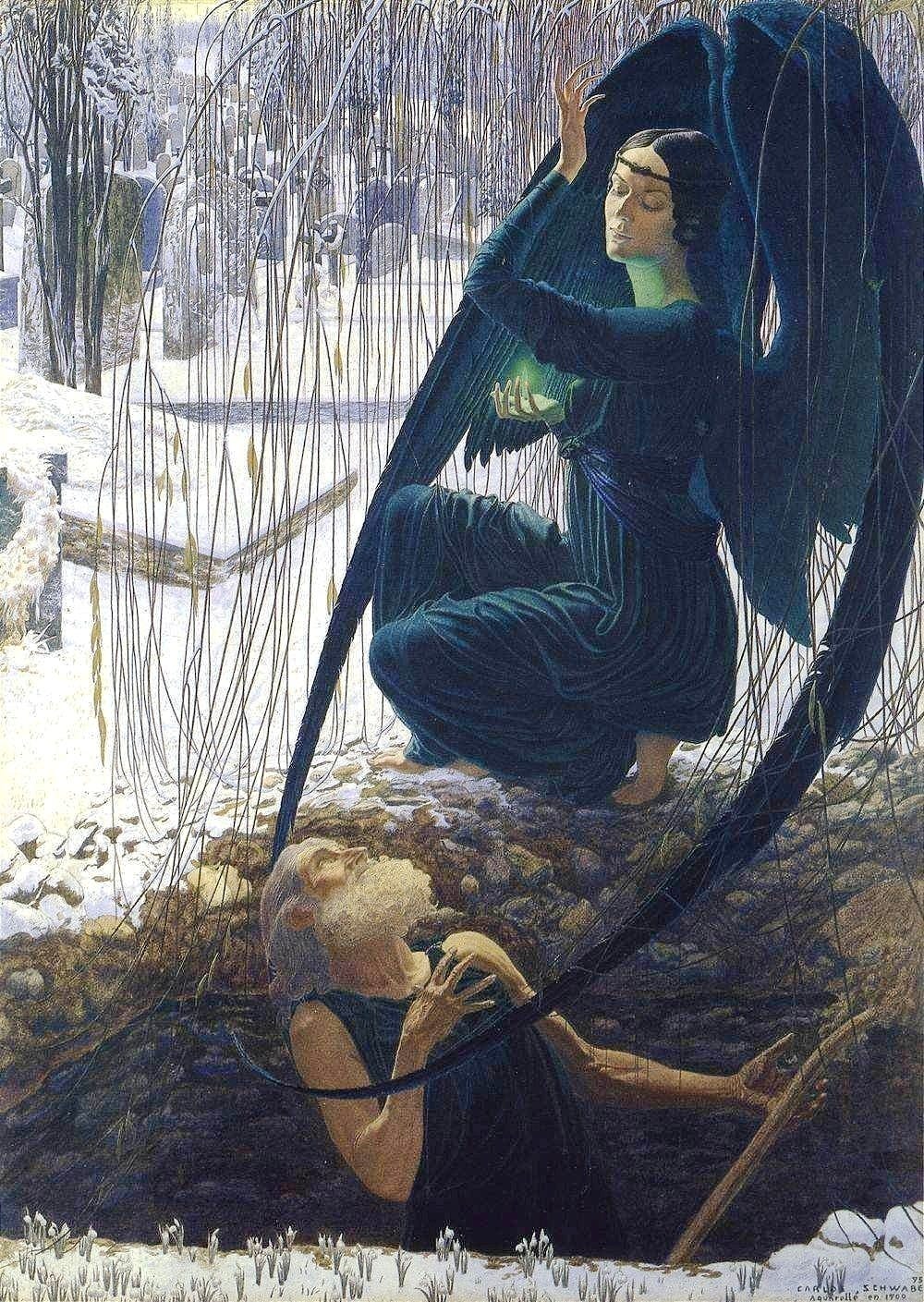 With sickle in hand, Death comes to reap the harvest of what was once growing, fertile, abundant. Its skeletal gaze stops us in our tracks, without eyes, yet able to bore so deeply into the soul. Layer upon layer it peels us back, a sharpened scythe that knows just how to cut into the most tender and vulnerable pieces of our being. Haunting as it may feel, the angel’s blackened wings envelop us, and all we can do is surrender, surrender, surrender.