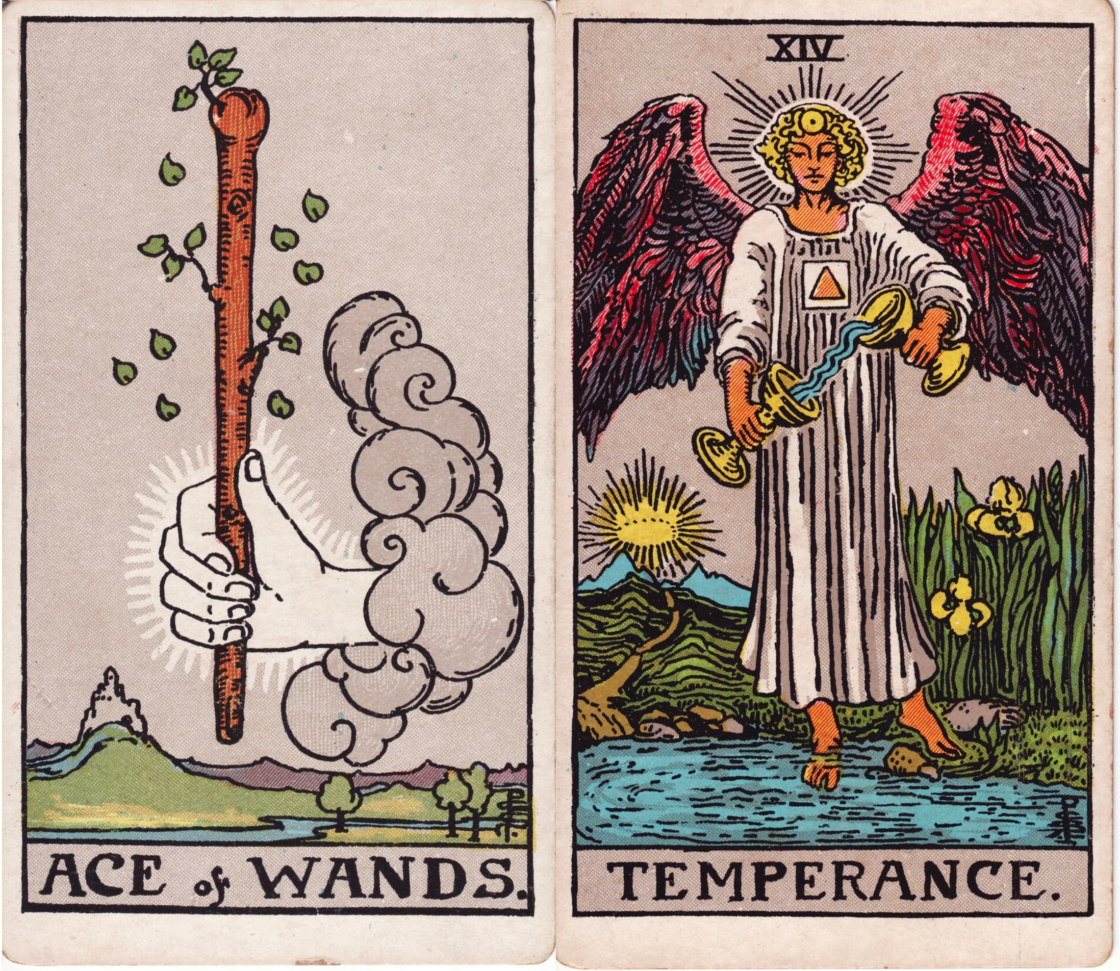Temperance: Blending and integration; dialectic and its resulting reconciliation; alignment between opposing or complementary forces